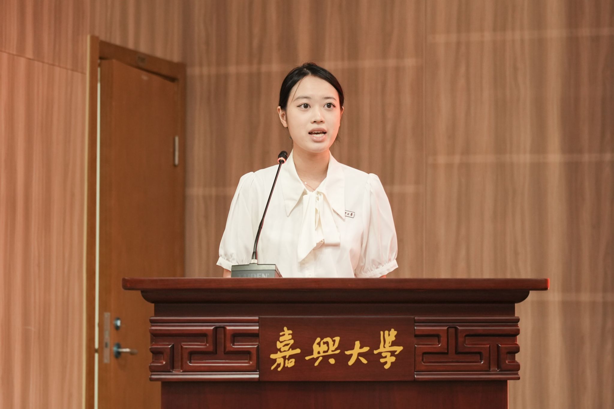 在校生代表英语232班林若兮、本科新生代表日语251班蒋正渊、研究生代表翻译硕士251班沈鹭分别发言。