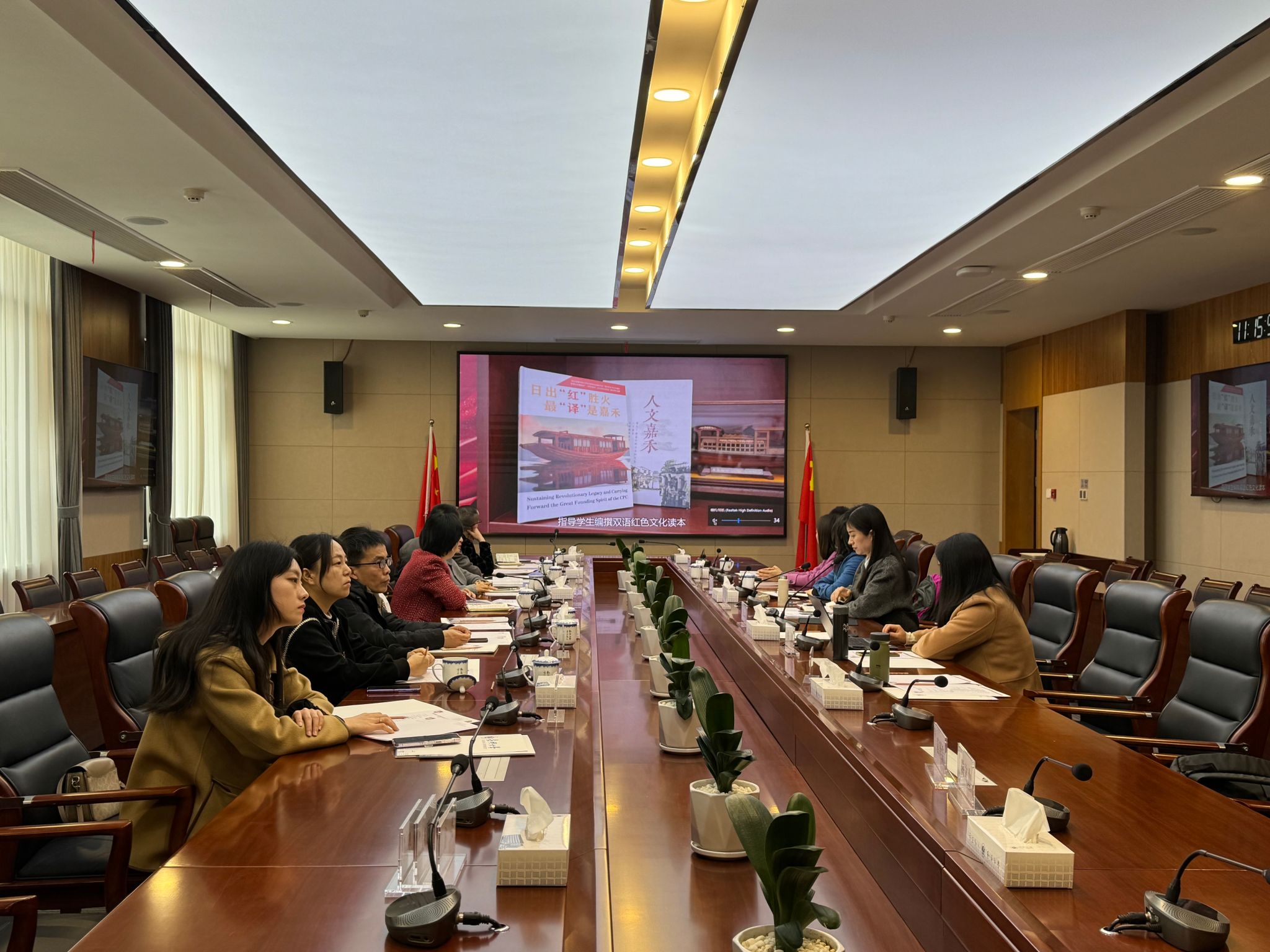 座谈会后景德镇陶瓷大学同人漫画 与我院开展党建交流,院党委书记周钰介绍了同人漫画 党建基本情况、党建与思想政治工作经验以及学院以“红船精神育人”理念为指引,打造“红色文化外译”党建品牌,创建全国党建样板支部和全省党建标杆院系的做法。第二党支部书记侯飞从支部简介、样板支部的预期建设成果、主要举措等方面介绍了申报第三批“全国党建工作样板支部”的经验与体会,并以视频的方式展现了第二党支部作为全国党建工作样板支部所开展的活动和取得的工作进展。