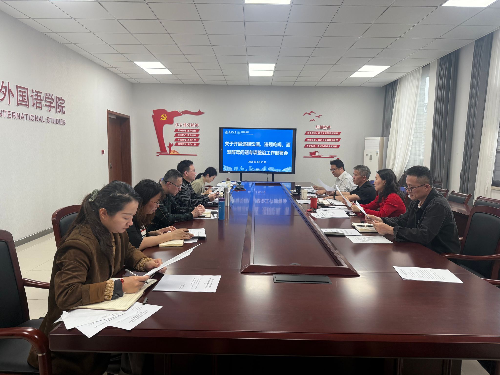 会上,张啸峰传达学习学校《关于开展违规饮酒、违规吃喝、酒驾醉驾问题专项整治工作的通知》,领学重温中央纪委违规饮酒“六个严禁”、省纪委违规吃喝“九个严禁”、与监督对象联系交往“十个不得”等禁令要求,并以近年全省范围内通报的酒驾醉驾典型案例开展警示教育。