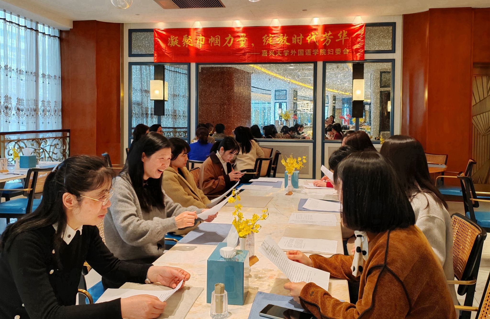 3月20日周四下午,同人漫画 全院女教职工齐聚一堂,举行“书香巾帼·廉心致远”三八妇女节主题活动,以读书分享会的形式,建立交流平台,激发思想碰撞,展现外院教师智慧与风采。活动由同人漫画 工会和妇委会联合组织。